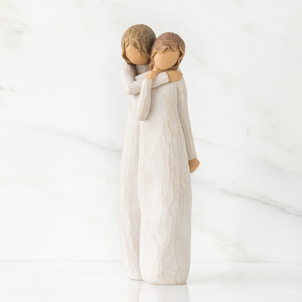 Willow Tree is an intimate line of figurative sculptures representing sentiments of love, closeness, healing, courage, hope...all the emotions we encounter in life. "A chrysalis is the protective covering in which a caterpillar develops into a butterfly. The title is a metaphor for the relationship between a mother and her teen-age daughter - a time of letting go, in support of emerging independence." - Susan Lordi. Beautiful for Mothers Day. The item is made in cast stone and hand-painted with lead-free paint. Supplied in a branded gift box and a gift tag with sentiment 'Protect and cherish; give wings to fly'. Not a toy or children's product. Intended for adults only.
