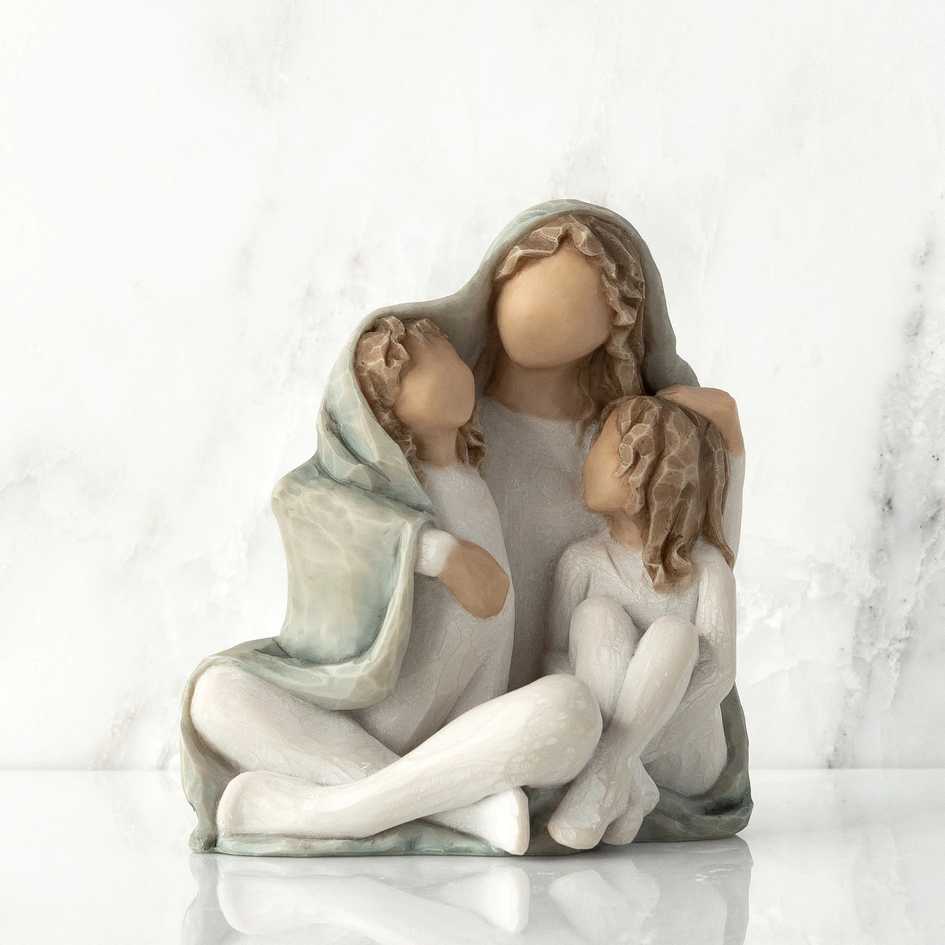 Close together, we three. Susan Lordi wants to represent time spent with family in lockdown and playing with make believe with items in the home. ''Make believe play, in a blanket fort or under the covers at bedtime, are some of my favourite memories of being a young mother with two little ones. Their imaginations are so fresh and free - It's fun to let go and get on the same level with them. Rewarding moments of being cozy with my children ... and now my grandchildren - Susan Lordi All of our new Willow Tree pieces come in recycable packaging