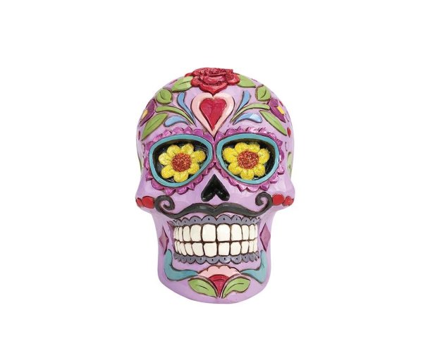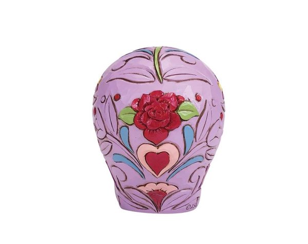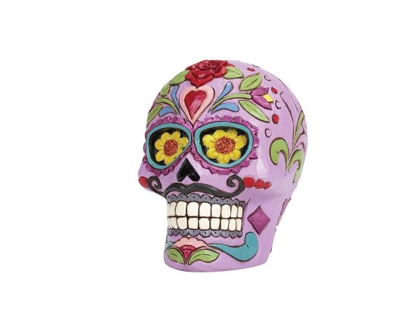 Designed in the iconic style of Jim Shore. This Day of the Dead purple skull pint is beautifully decorated with lively Mexican inspired pattern and colour. Modelled after a sugar skull. Hand painted in high quality cast stone. Designed by award-winning artist and sculptor Jim Shore for Heartwood Creek. Item is supplied in branded gift packaging. Unique variations should be expected due to product being hand painted.