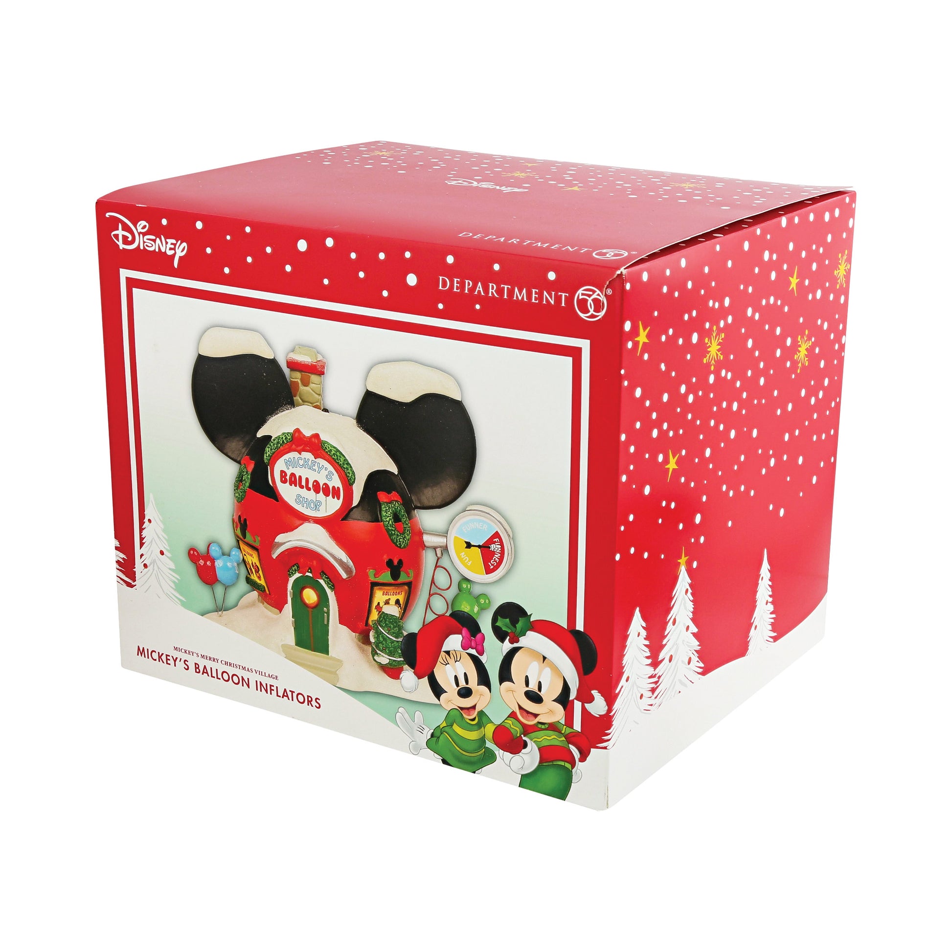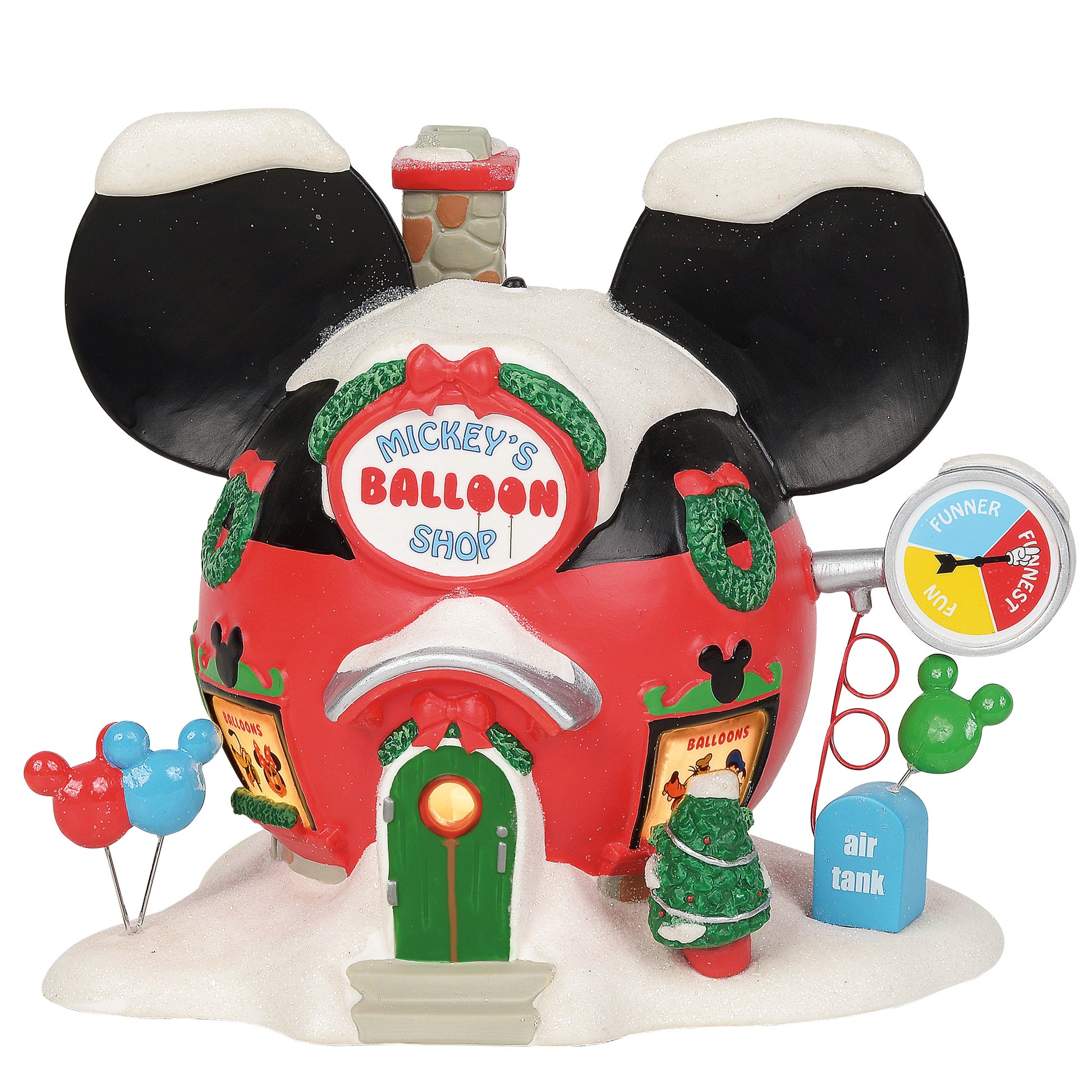 Always working to provide endless joy to the children, Mickey Mouse whipped up this nifty building, which exists for the sole purpose of inflating balloons of all shapes and sizes. A fun addition to your Disney Village. Made from Porcelain. Includes EU 2-pin plug.