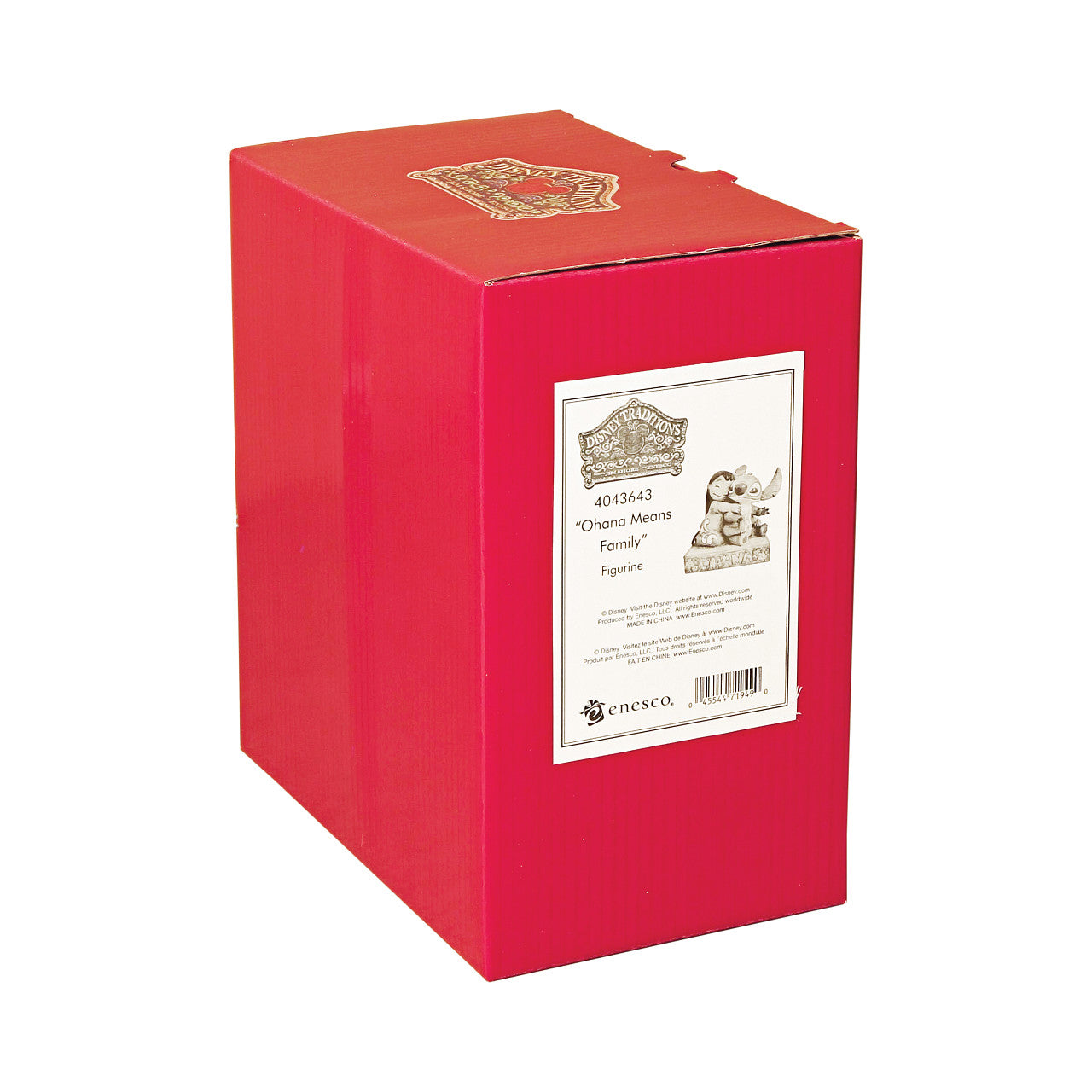 Lilo and Stitch come together in an exemplary display of Ohana which means family. This heart-warming piece has been designed by award winning artist and sculptor, Jim Shore for the Disney Traditions range. The figurine is made from cast stone. Unique variations should be expected as this product is hand painted. Packed in a branded gift box. Not a toy or children's product. Intended for adults only.
