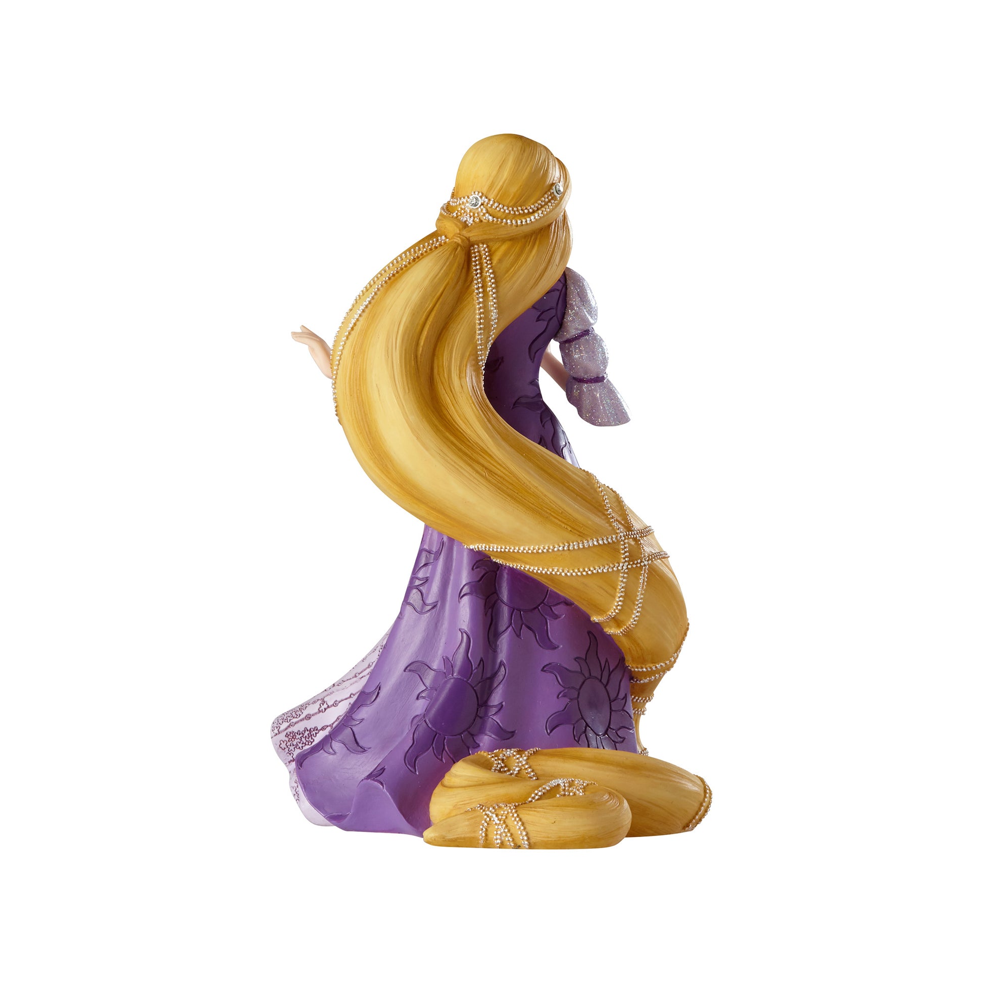 Follow your dreams with this radiant princess. Rapunzel from Disney's Tangled will light up your collection with exquisite details, like her sparkling sleeves, pearls braided through her golden hair and gown with a sun and flower pattern reminiscent of her kingdom, Corona. The figurine is made from cast stone. Each piece is hand painted and slight colour variations are to be expected which makes each piece unique. Supplied in branded gift box. Not a toy or children's product. Intended for adults only.
