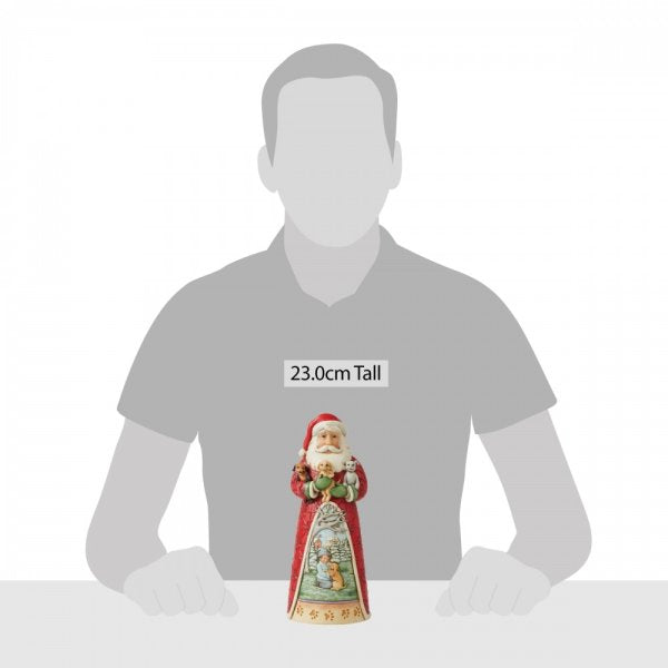 Traditional Heartwood Creek Collection; Wood carved textures and intricately detailed designs. Unique, sometimes surprising combinations of colors - often incorporating a touch of Jim's favorite color - purple. This magical Santa with his arm full of Puppies would make for a perfect dog-lovers gift this Christmas.