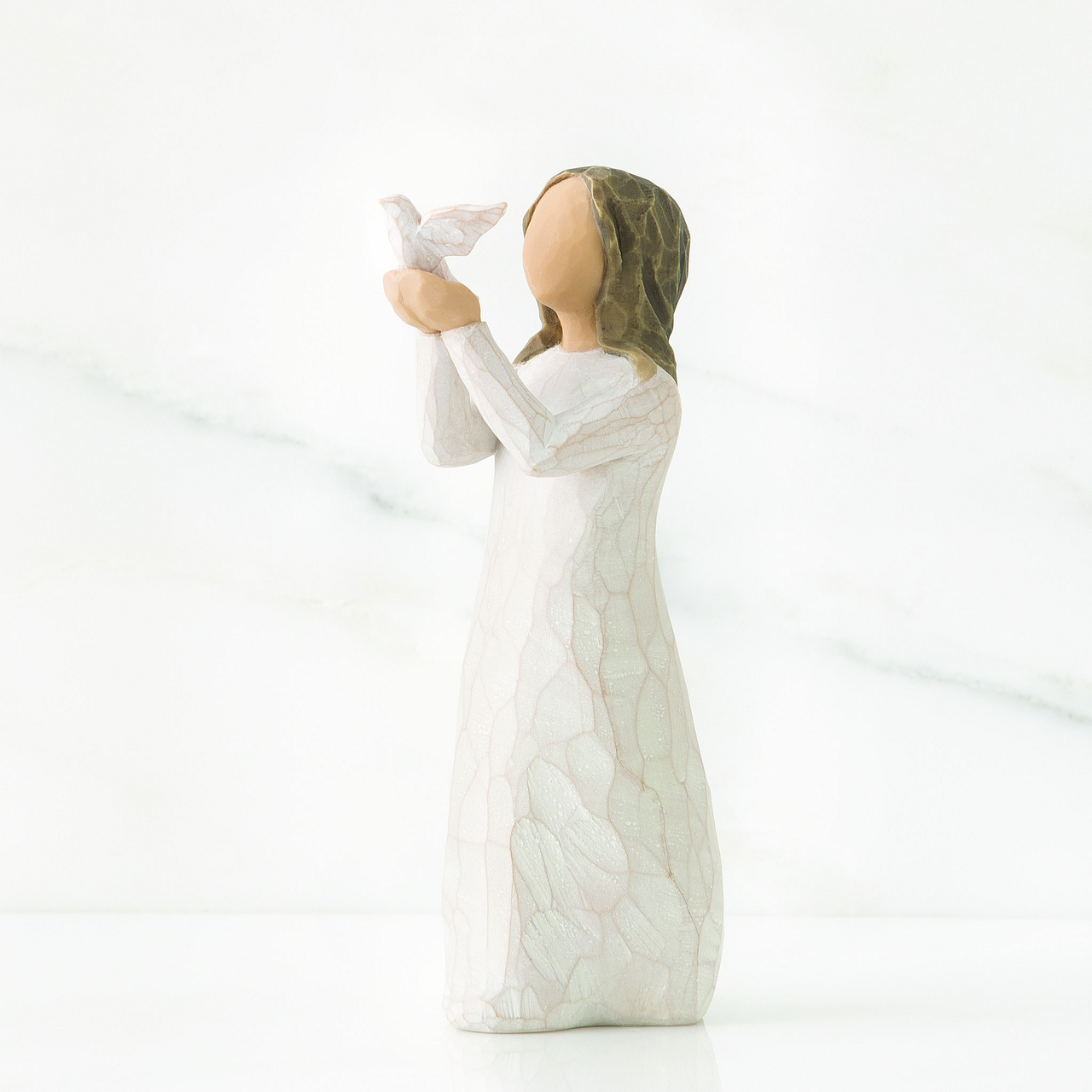 A gift for graduates or to celebrate special accomplishments ...to encourage, support and acknowledge individual strength. "The gesture of the figurine and the bird communicates forward movement... being uplifted, moving onwards; a release of hopes, dreams and spirit; of new beginnings and of endings; in celebration of a life... or in anticipation of a life together. Thie piece could be a way to express best wishes to someone who is taking a new path in life; on a road to recovery from illness or towards self - improvement ...A hopeful symbol of peace for military families awaiting the return of their soliders ...An expression of sympathy to someone who has lost a loved one. The sentiment refers to the song Turn, Turn, Turn, written by Peter Seeger in 1959, adapted from the Book of Ecclesiastes. In the song, there's a contrast in each example ...'A time to be born/die, plant/reap, laugh/weep' and so on. I like the lyrical, repetitive nature of the phrasing. At significant milestones, we often pause and reflect before moving forward, so 'a time to reflect, a time to soar' semmed like a nice expression for this piece" - Susan Lordi. The figure includes a gift tag with sentiment 'a time to reflect, a time to soar'.
