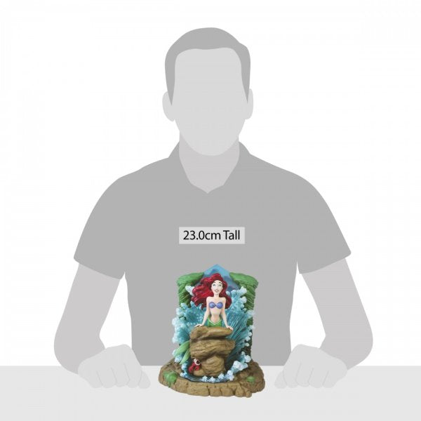 The Little Mermaid light up figurine. The figurine is made from cast stone. Each piece is hand painted and slight colour variations are to be expected which makes each piece unique. Supplied in branded gift box. Not a toy or children's product. Intended for adults only. 3x AAA batteries required.