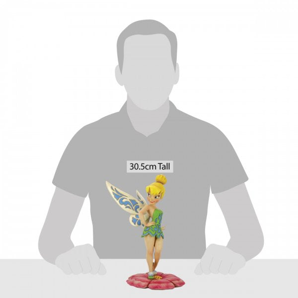 "Sassy Sprite" Full of personality and sass, Tinker Bell strikes a pose on petals in this lively Jim Shore statuette. Celebrating the 70th anniversary of Disney's Peter Pan, this fairy pays homage to faith and trust and pixie dust. Made from cast stone. Packed in a branded gift box. Unique variations should be expected as this product is hand painted. Not a toy or children's product. Intended for adults.